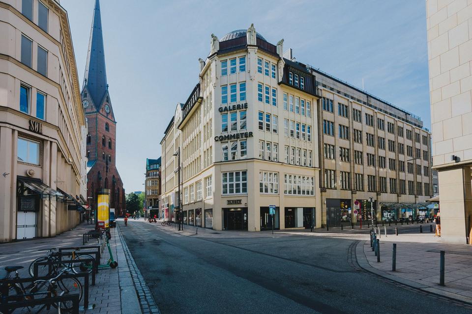 Wir sitzen im wunderschönen Commeterhaus, mitten in der Hamburger Innenstadt, in absoluter Bestlage zwischen der Europa Passage, dem Hamburger Rathaus und der Binnenalster.