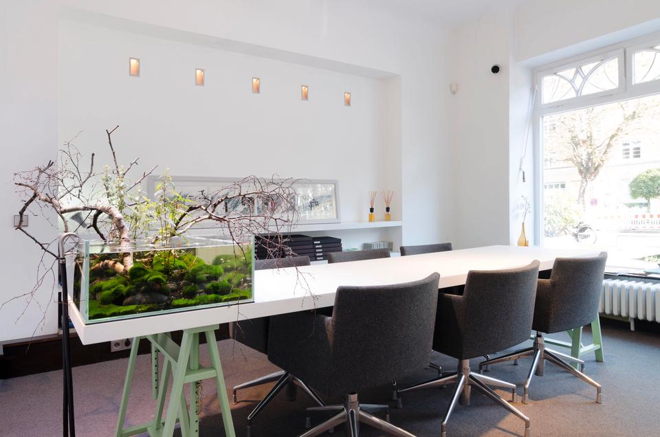 Mehr zum Angebot Kleiner Büroraum im stilvollen Innenarchitekt-Atelier - Schreibtischplätze für 2: